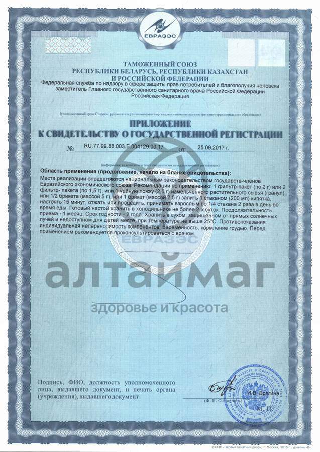 При желудочно-кишечных заболеваниях, в гинекологии (эрозия шейки матки, кровотечения, обильные менструации, кольпиты, фибромиомы), суставном ревматизме. При болезнях почек, связанных с ушибами, желудочно-кишечных заболеваниях и новообразованиях, дизентерии, поносах, лихорадке. При воспалительных процессах ротовой полости, головной боли, тошноте, рвоте, воспалении и туберкулезе легких. Как вяжущее, противоспалительное, диуретическое, кровоостанавливающее, дезинфицирующее, гемостатическое, противолихорадочное, сосудосуживающее, бактерицидное, капилляроукрепляющее и понижающее артериальное давление средство.Масса нетто: