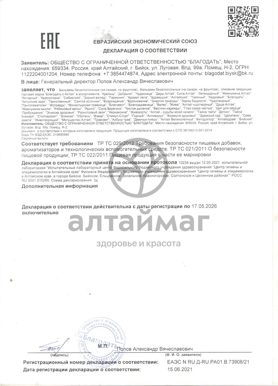 Состав Бальзама дары алтая противопростудного