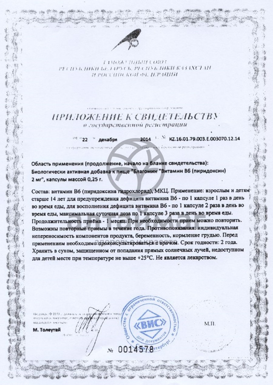«Благомин» Витамин В6 (пиридоксин) рекомендуется в качестве биологически активной добавки к пище – дополнительного источника витамина В6.