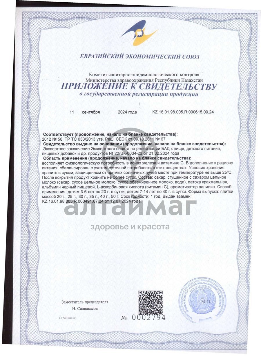Обладает общеукрепляющим действием, дополнительный источник железа.