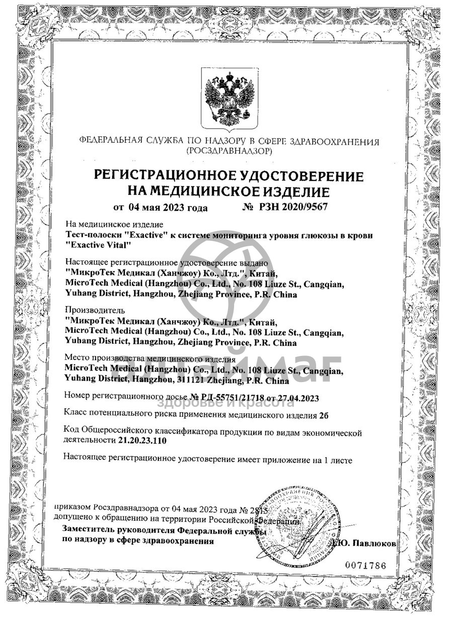 Глюкометр – Cистема мониторинга уровня глюкозы в крови Exactive Vita. Защита от прикосновений к полоске обеспечивает Инновационная оболочка – полоску можно брать за любую часть на результат анализа это не влияет Кнопка автосброса использованной полоски без контакта с образцом крови. Риск испачкаться или инфицироваться отсутствует. Калиброван по плазме – что позволяет легко сравнивать полученные результаты с результатами лабораторных исследований. А влияние переменных факторов на точность исключено.