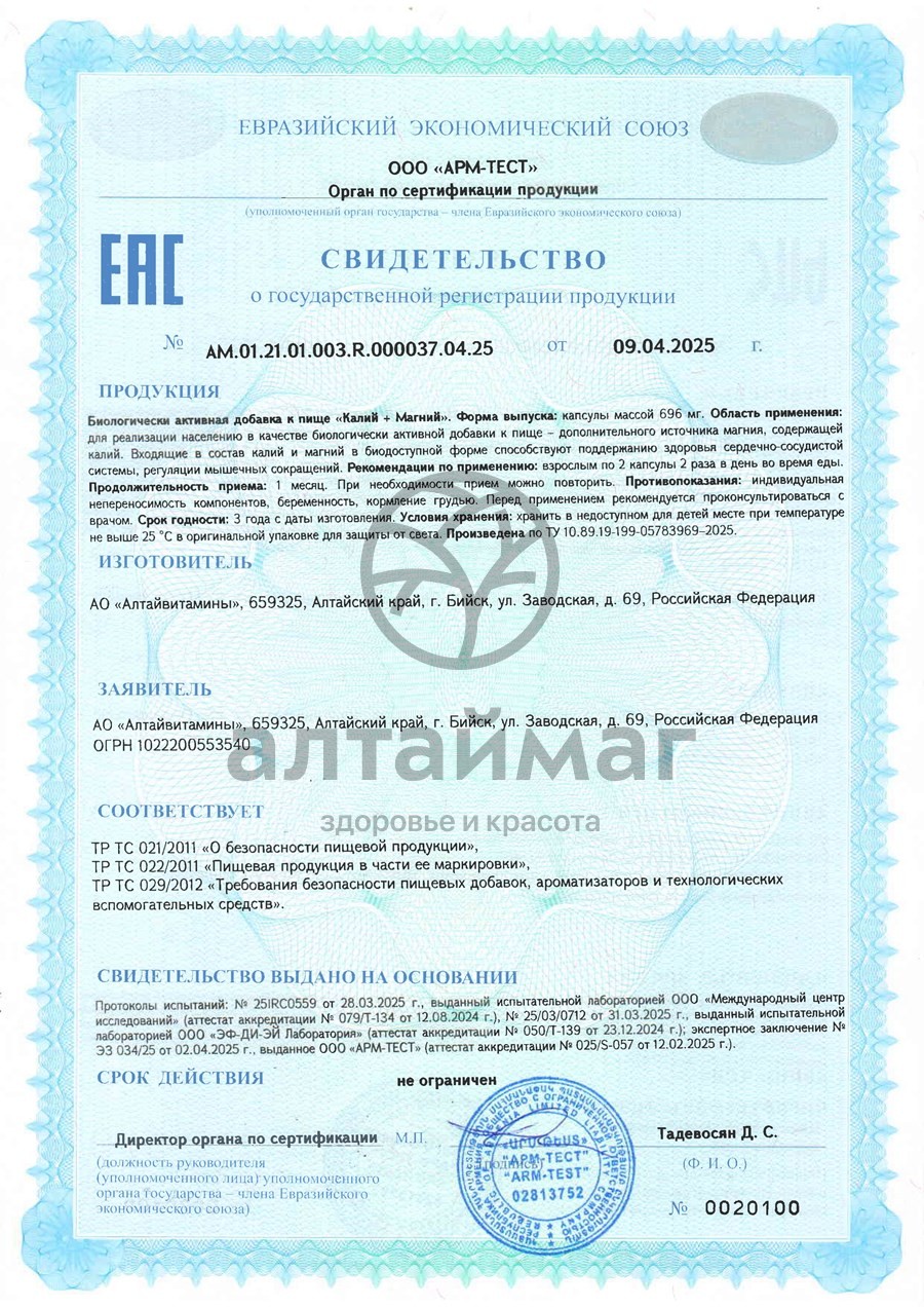 - Купите Калий + магний БАД Алтайвитамины 60 капсул в Рубцовске по доступной цене 664 ₽ с доставкой на дом или заберите Ваш заказ в Рубцовске из ближайшего пункта выдачи, сделав заказ на AltaiMag.ru.