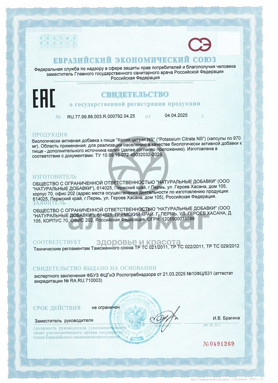 - Купите Калия Цитрат БАД Naturalsupp 60 капсул в Рубцовске по доступной цене 330 ₽ с доставкой на дом или заберите Ваш заказ в Рубцовске из ближайшего пункта выдачи, сделав заказ на AltaiMag.ru.