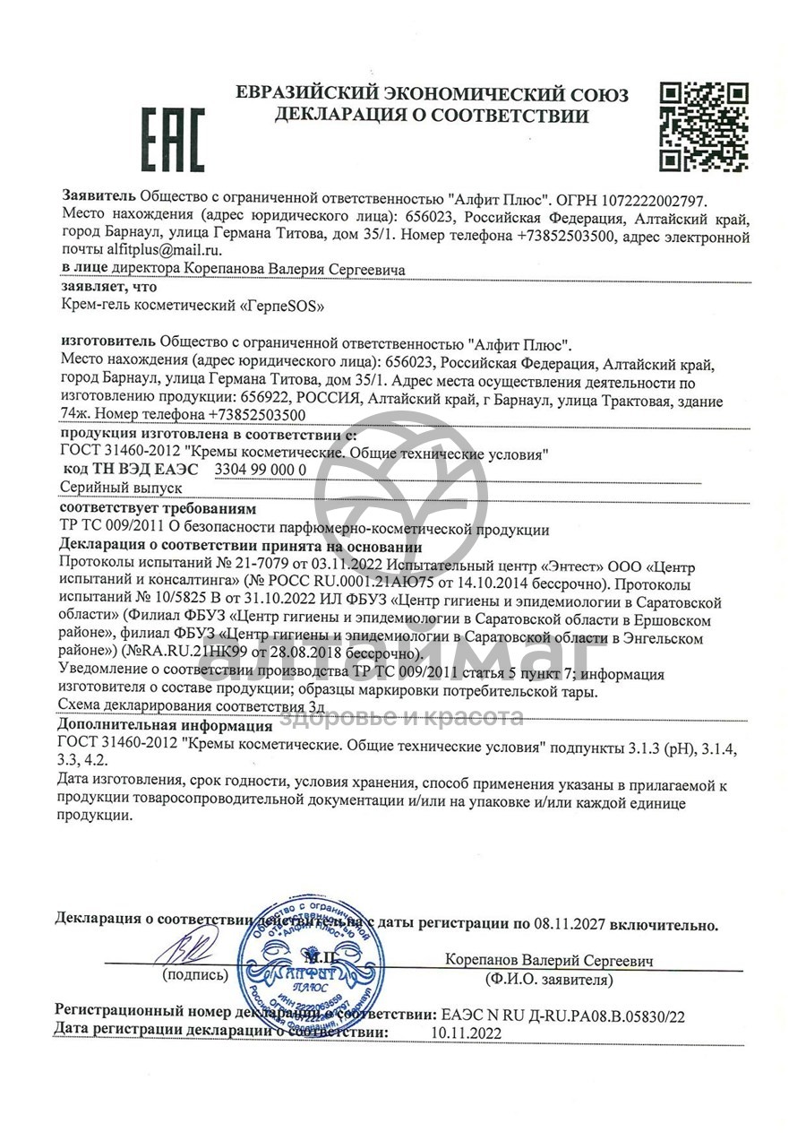 - Купите Крем-гель Герпеsos Алфит 5мл в Рубцовске по доступной цене 151 ₽ с доставкой на дом или заберите Ваш заказ в Рубцовске из ближайшего пункта выдачи, сделав заказ на AltaiMag.ru.