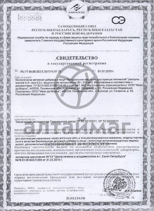 - Купите Масло расторопши Иван да Марья №100 капсулы в Рубцовске по доступной цене 78 ₽ с доставкой на дом или заберите Ваш заказ в Рубцовске из ближайшего пункта выдачи, сделав заказ на AltaiMag.ru.
