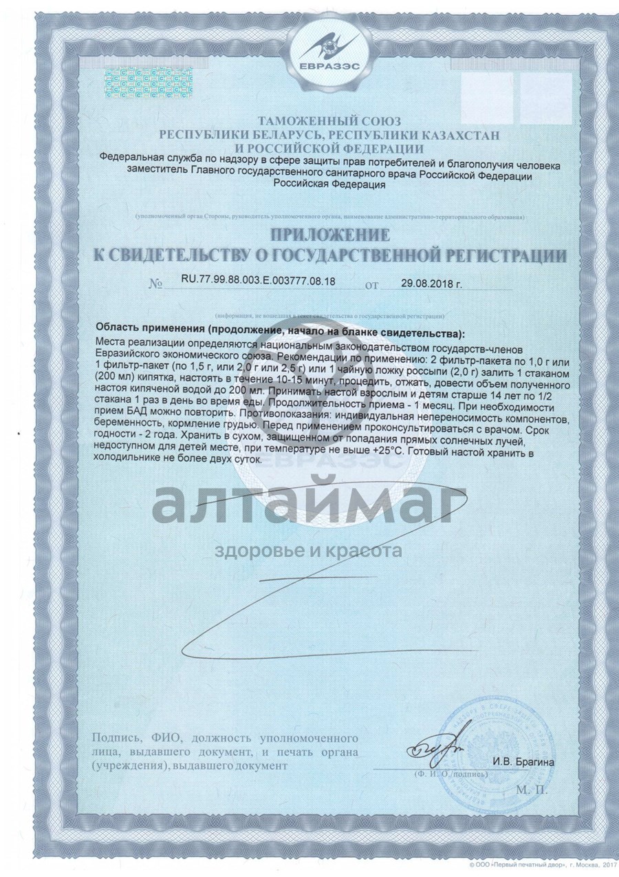 1 чайную ложку россыпи (2,0 г) залить 1 стаканом (200 мл) кипятка, настоять в течение 45 минут при периодическом помешивании, принимать взрослым по 1/2 стакана 4 раза в день во время еды.Назначение