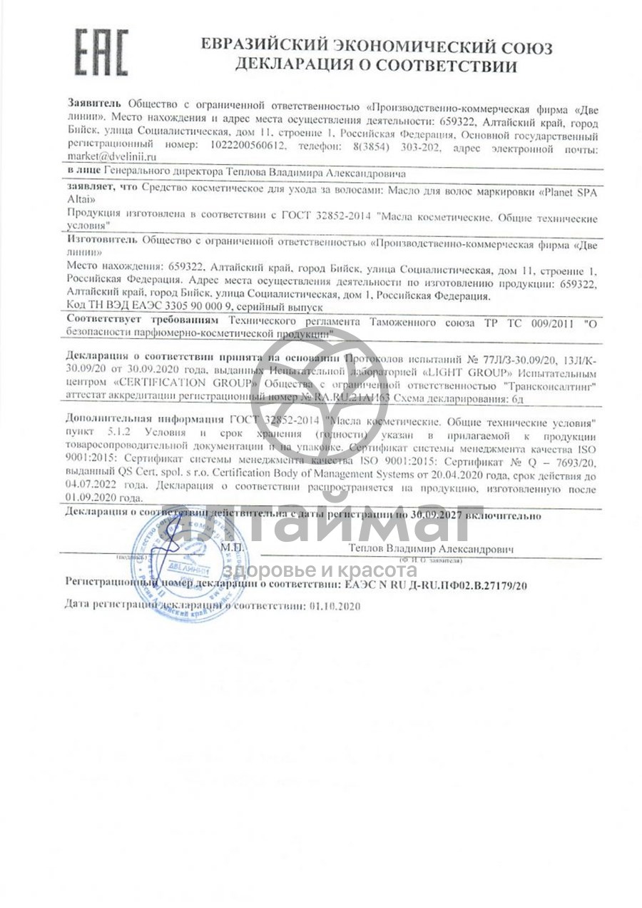 - Купите Планета Спа Алтай Масло для волос, 50 мл в Рубцовске по доступной цене 375 ₽ с доставкой на дом или заберите Ваш заказ в Рубцовске из ближайшего пункта выдачи, сделав заказ на AltaiMag.ru.
