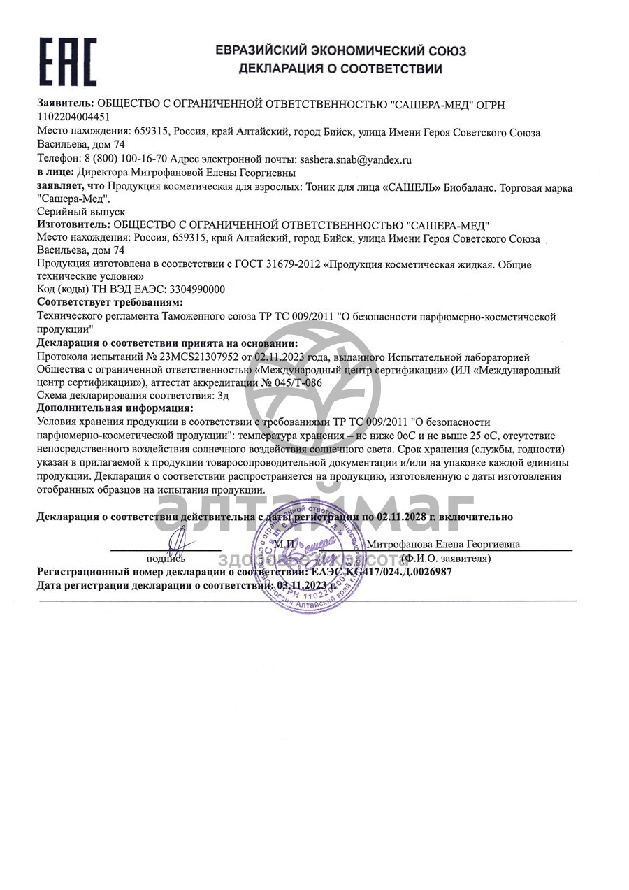 - Купите Сашель Биобаланс Тоник для лица, 50 мл в Рубцовске по доступной цене 249 ₽ с доставкой на дом или заберите Ваш заказ в Рубцовске из ближайшего пункта выдачи, сделав заказ на AltaiMag.ru.