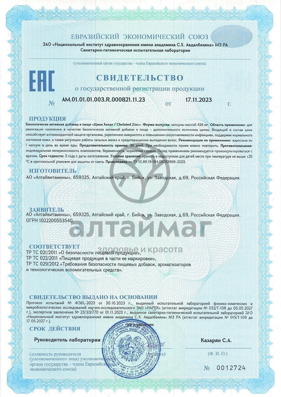 - Купите Цинк Хелат Алтайвитамины 90 капсул в Рубцовске по доступной цене 780 ₽ с доставкой на дом или заберите Ваш заказ в Рубцовске из ближайшего пункта выдачи, сделав заказ на AltaiMag.ru.