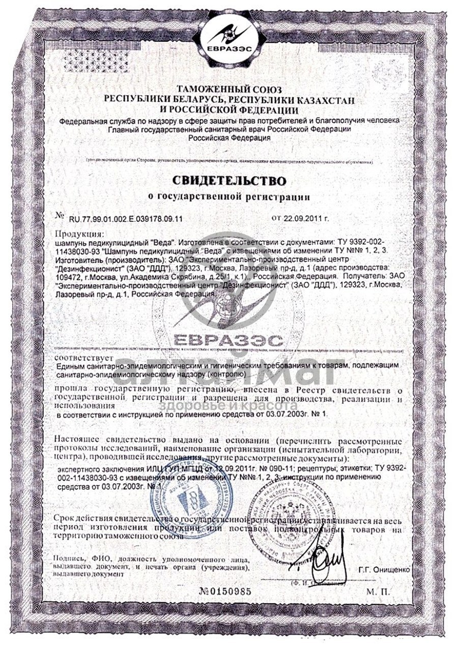 - Купите Веда педикулицидный шампунь 100 мл в Рубцовске по доступной цене 249 ₽ с доставкой на дом или заберите Ваш заказ в Рубцовске из ближайшего пункта выдачи, сделав заказ на AltaiMag.ru.