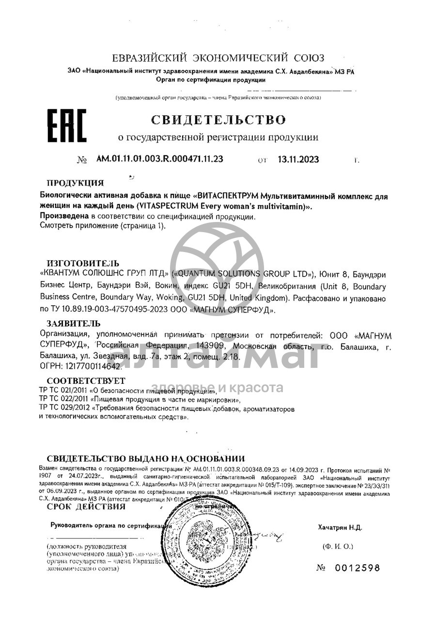 - Купите Витамины для женщин VitaSpectrum 60 таблеток в Рубцовске по доступной цене 785 ₽ с доставкой на дом или заберите Ваш заказ в Рубцовске из ближайшего пункта выдачи, сделав заказ на AltaiMag.ru.