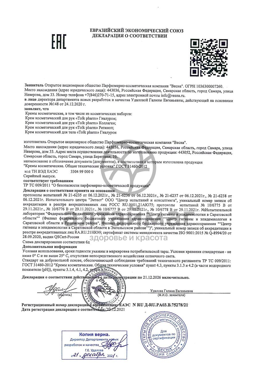 Есть вопросы по товару "Крем для рук Tolk Pharm Гиалурон Весна 75мл"?
